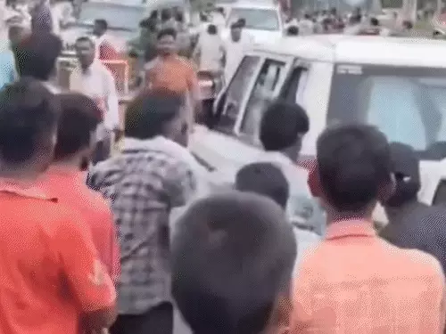 डीएसपी की गाड़ी पर पथराव, मुक्के मारे
