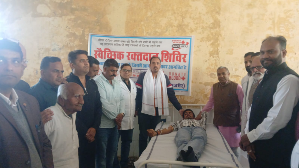 नसीराबाद। सोमवार को राजकीय सामान्य चिकित्सालय नसीराबाद में राजस्थान सरकार के दो वर्ष पूर्ण होने के उपलक्ष्य में रक्तदान शिविर का सफल आयोजन किया गया। शिविर का आयोजन जनाना रक्तदान टीम के सहयोग से किया गया, जिसमें शहरवासियों ने उत्साहपूर्वक भाग लिया।