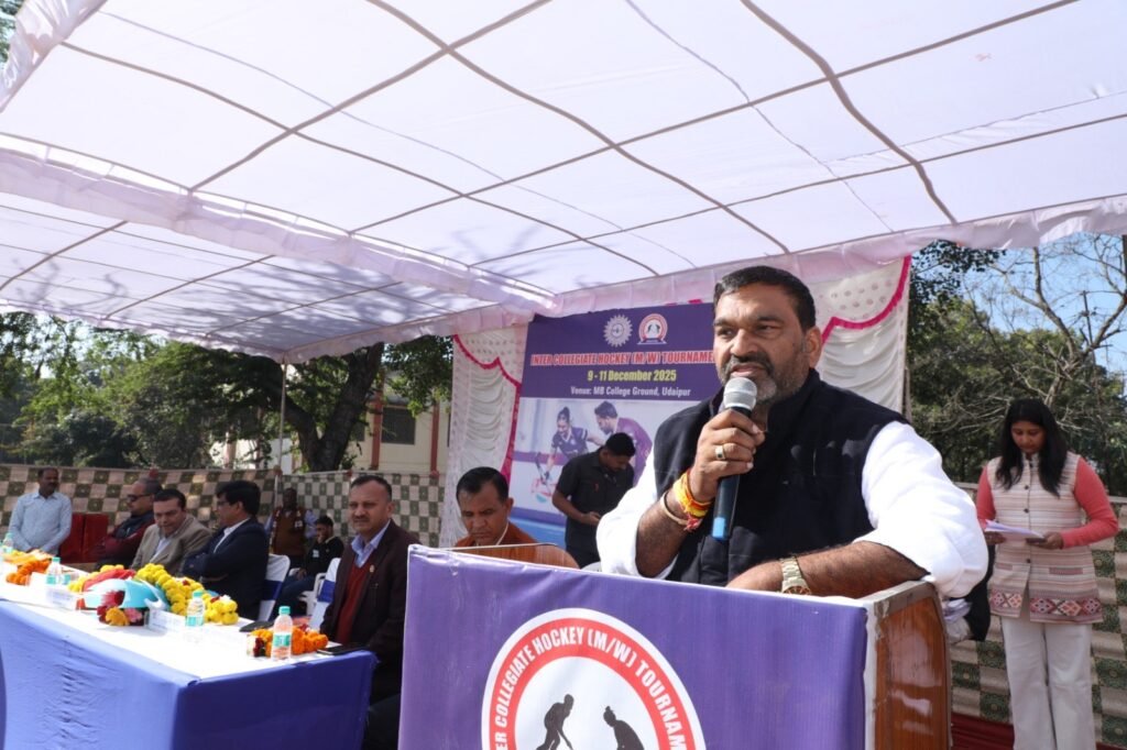 उदयपुर । मोहनलाल सुखाड़िया विश्वविद्यालय के अन्तर महाविद्यालयी प्रतियोगिताओं के अन्तर्गत सत्र 2025-26 में विश्वविद्यालय सामाजिक विज्ञान एवं मानविकी महाविद्यालय के तत्वावधान में अन्तर महाविद्यालयी हॉकी (पुरूष/महिला) प्रतियोगिता का उद्घाटन समारोह आज एम.बी. खेल परिसर में स्थित ग्राउण्ड पर हुआ।