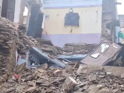बारिश के बाद जर्जर मकान भरभरा कर गिरा, चार लोग थे घर में मौजूद