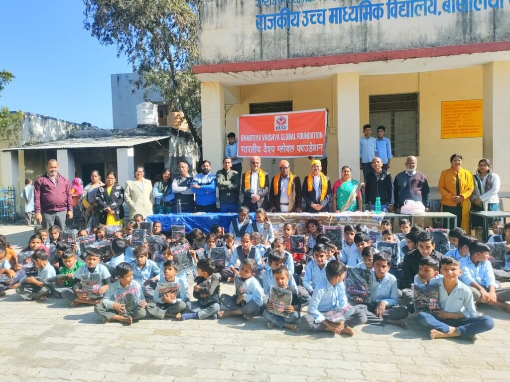 उदयपुर। भारतीय वैश्य ग्लोबल फाउंडेशन की उदयपुर इकाई द्वारा राउमावि बांसलिया में सामाजिक उत्तरदायित्व एवं सेवा भावना को लेकर जिलाध्यक्ष सीए आनन्द कुमार गर्ग, जिला संरक्षक रवीन्द्र अग्रवाल एवं संभाग संरक्षक सीए निर्मल कुणावत ने कक्षा 1 से 8 के 100 छात्र- छात्राओं को स्वेटर बांटे।