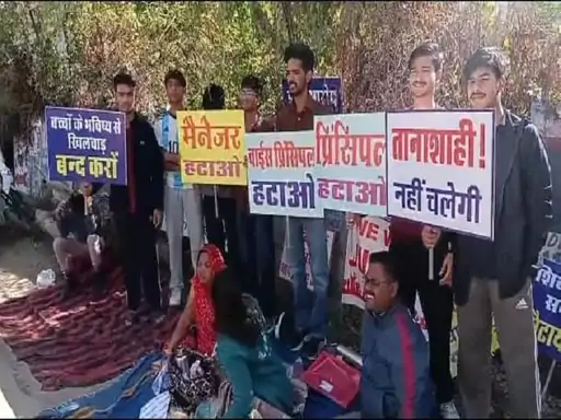 2 टीचर टर्मिनेट के विरोध में स्कूल के बाहर धरने पर बैठे